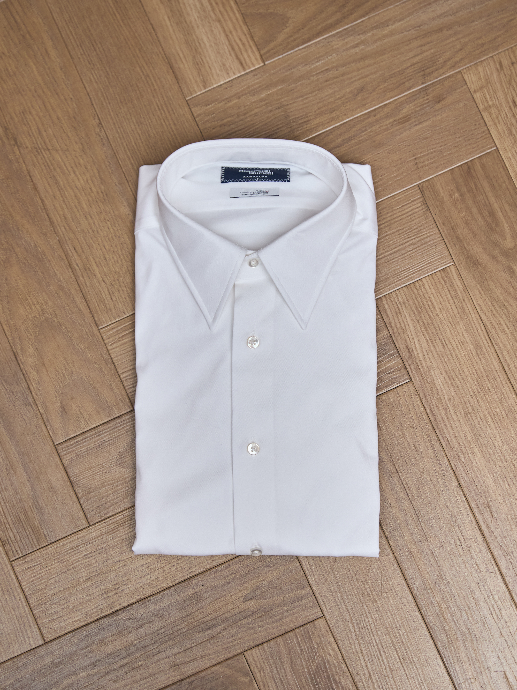 長尖領在鐮倉襯衫的訂製單上是標示為 Regular Collar,其開角比較小,給人正式的感覺。